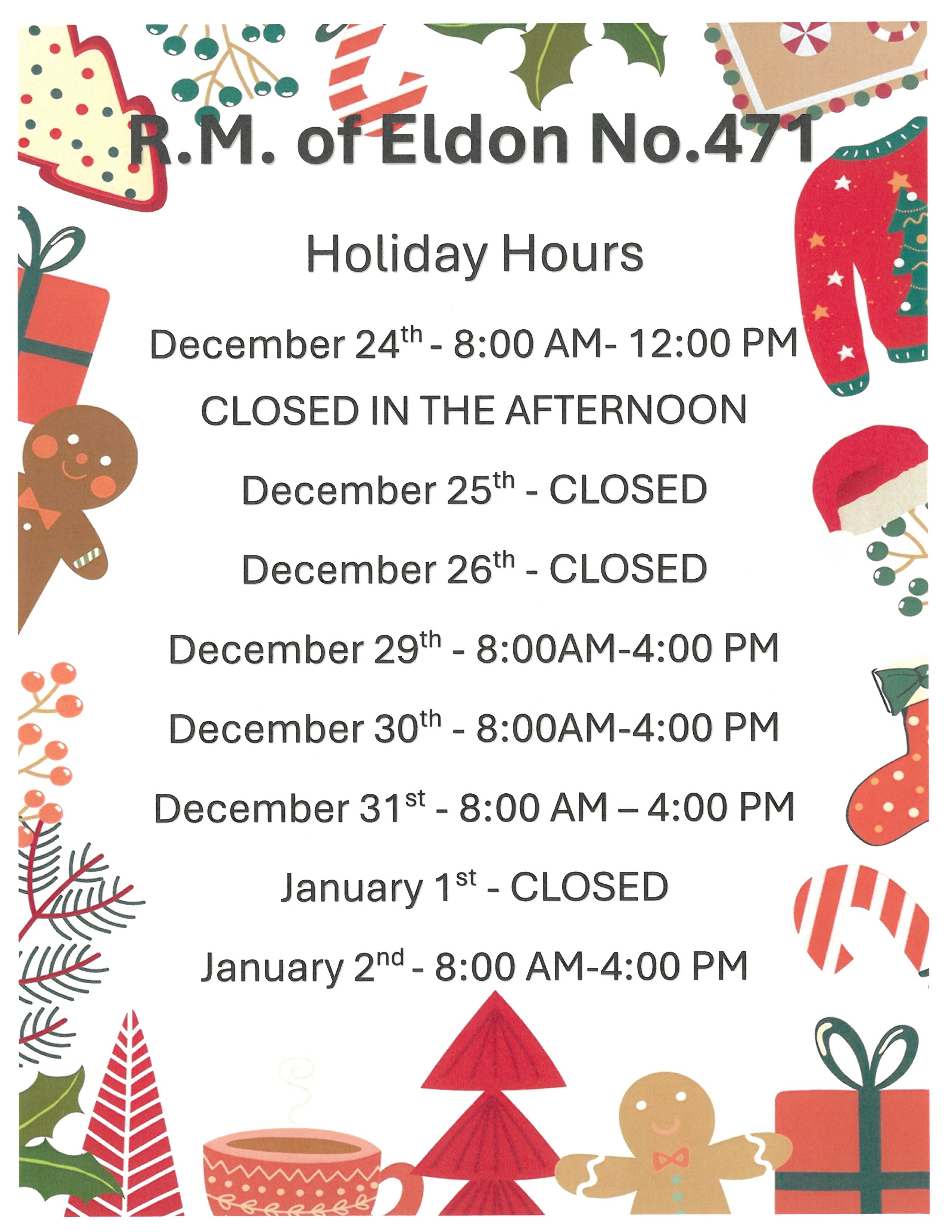 The R.M of Eldon No. 471 offers residents the opportunity to receive specific municipal notices including tax notices by email. Please click the link above to fill out the consent form & return by email to office@rmeldon.ca